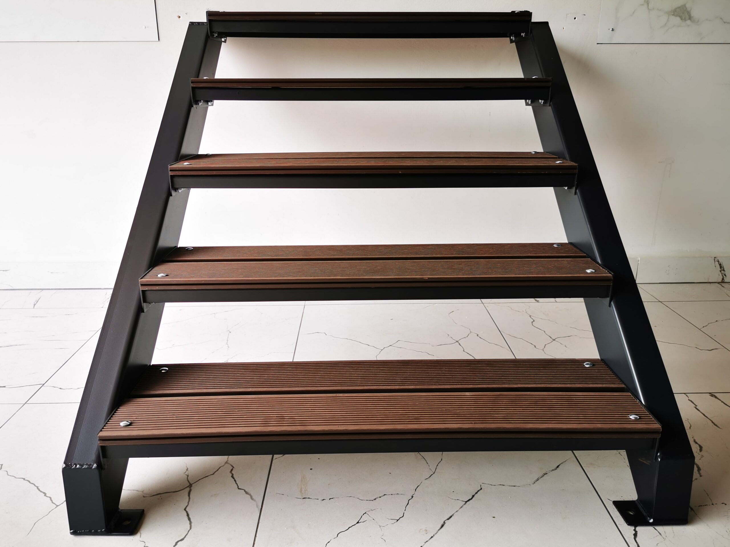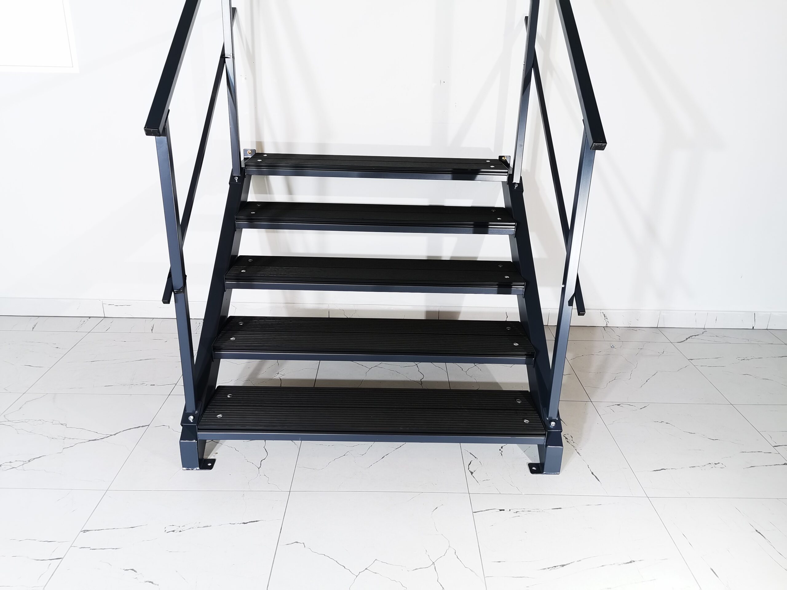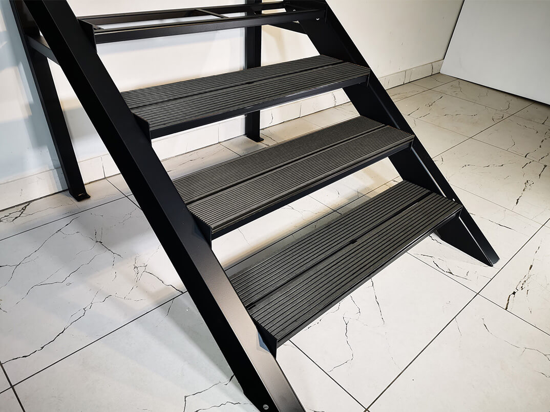 • Stelaż na stopkach: Z otworami umożliwiającymi przymocowanie schodów do podłoża.