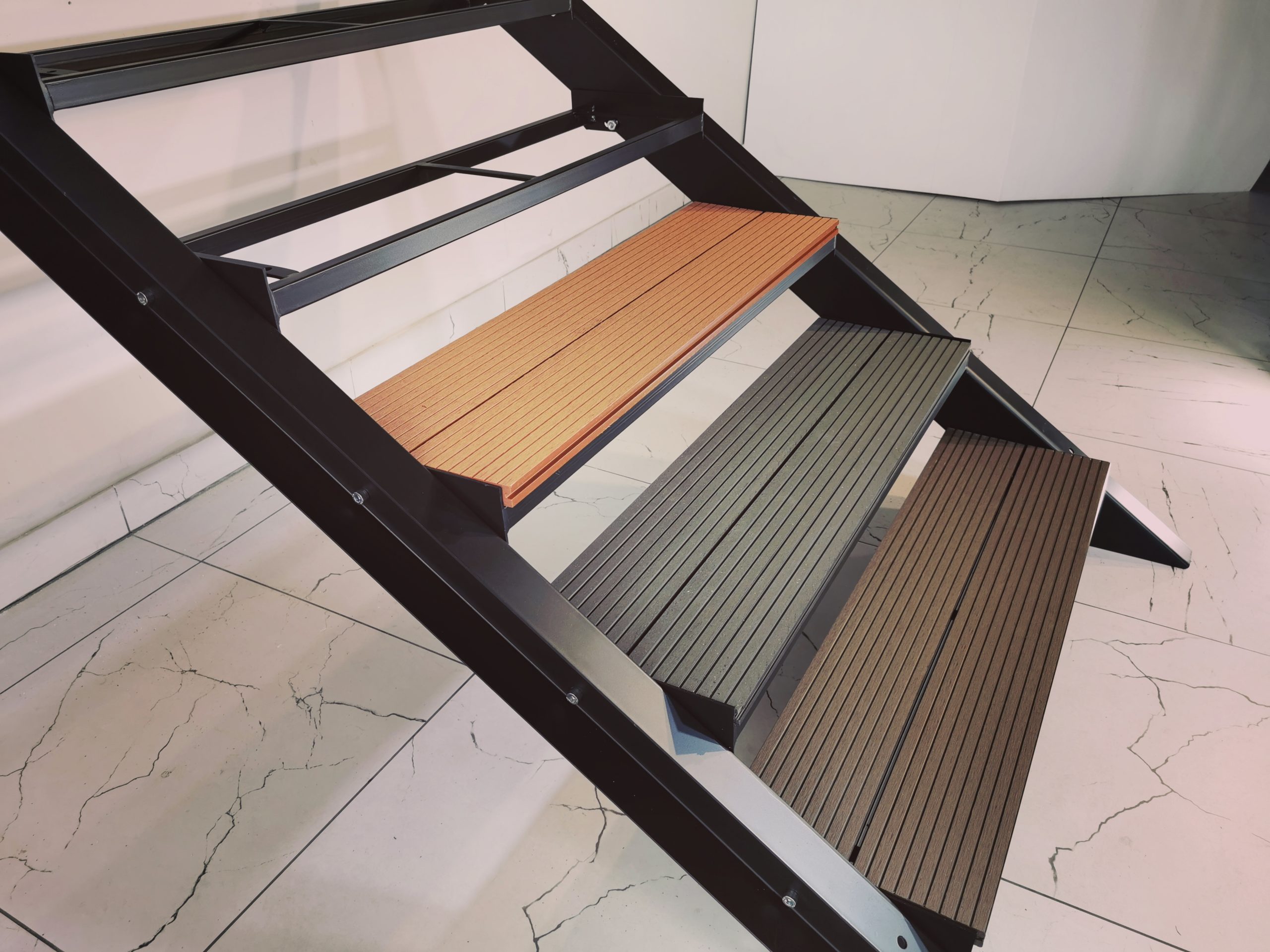 Schody C-system to bardzo mocne, solidne schody wykonane ze stali, stopnie są pod deskę, panele, płyty, kamień