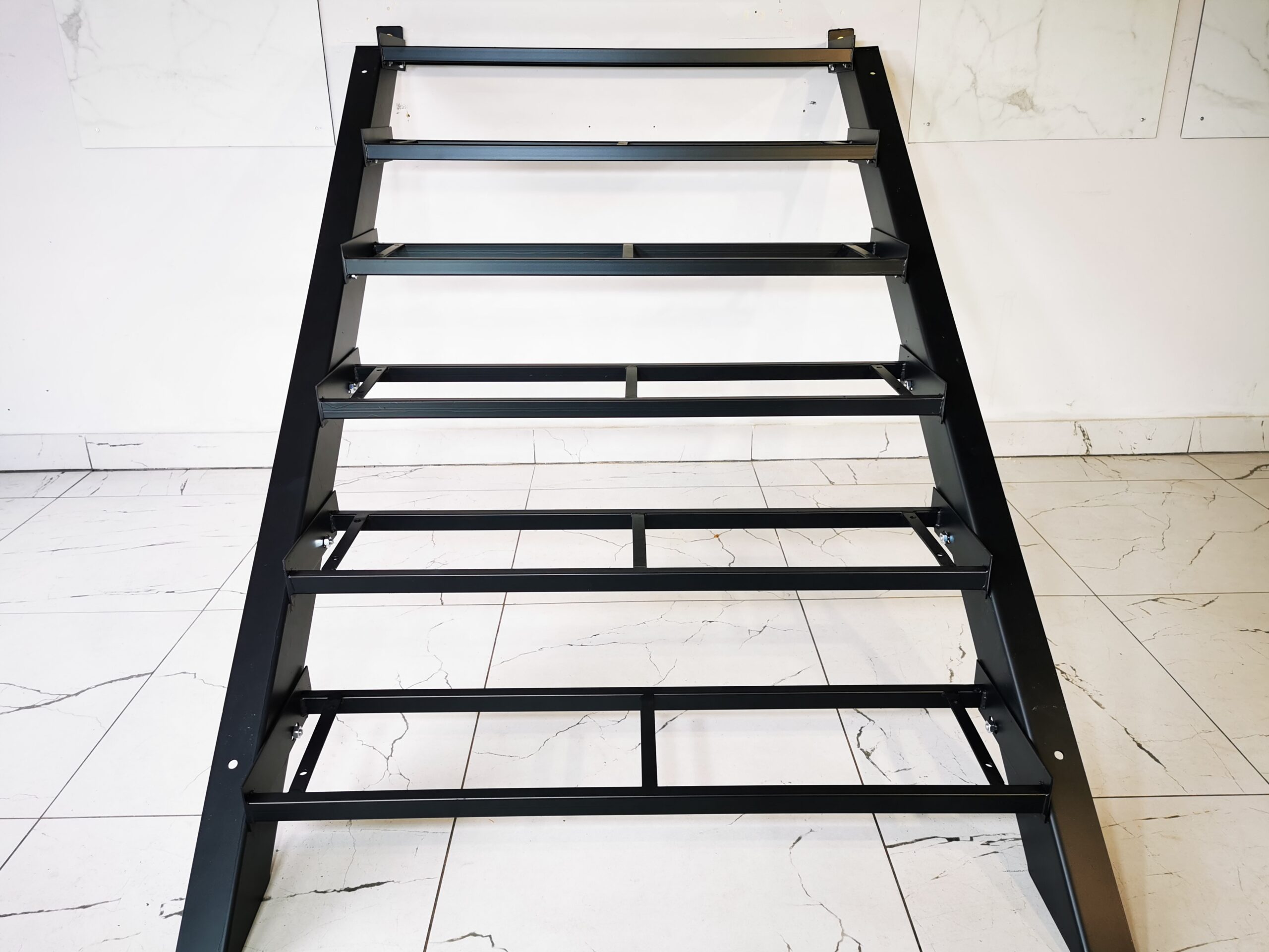 • Konstrukcja stalowa: Wykonana z ceownika 120x60 mm, malowana dwuwarstwowo: pierwsza warstwa farbą podkładową, druga warstwa farbą nawierzchniową w kolorze ciemny grafit matowy.